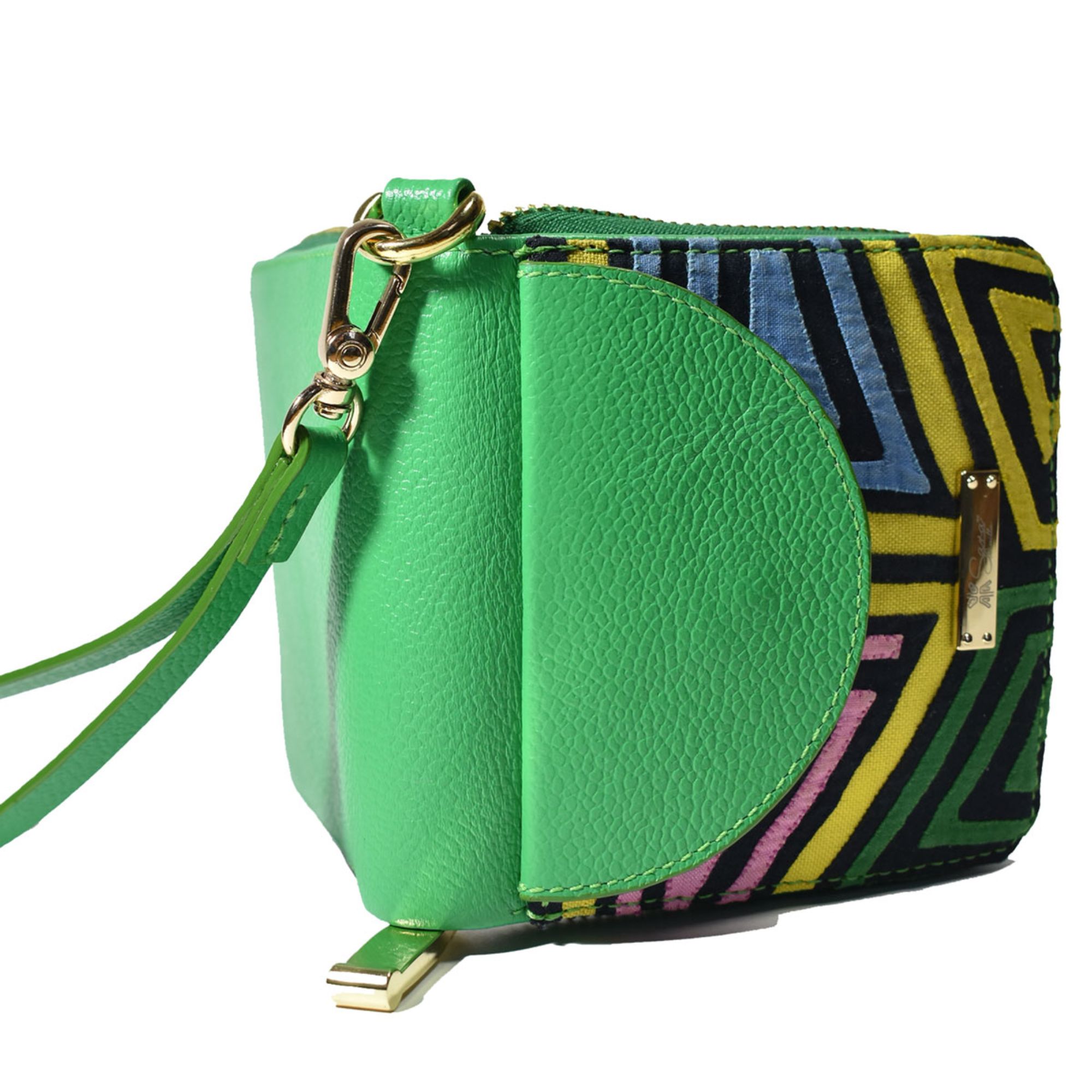 La combinación de cuero y mola le aporta carácter y distinción, mientras que la cargadera de mano permite llevarla con comodidad. Es una pieza funcional que también puede usarse como accesorio visible.